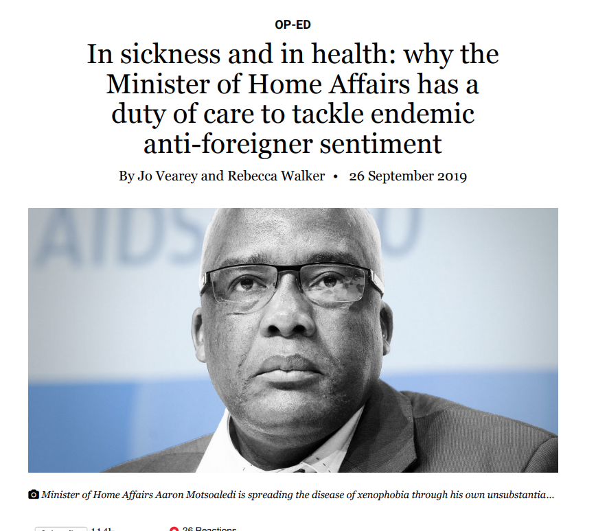 By Jean Pierre Misago, Loren Landau and Silindile Mlilo – Daily Maverick, 26 September 2019
